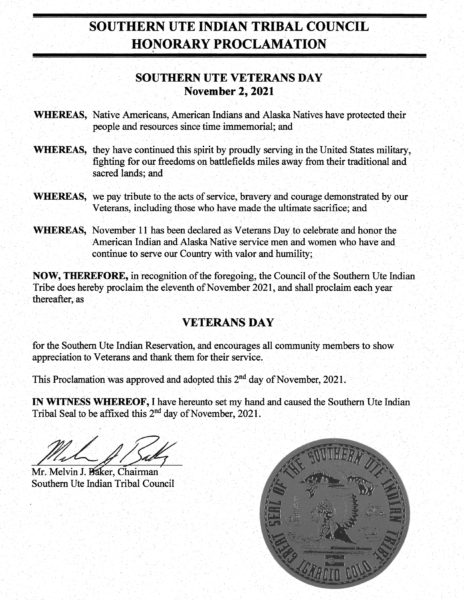 Southern Ute Indian Tribe: Veterans Day Proclamation