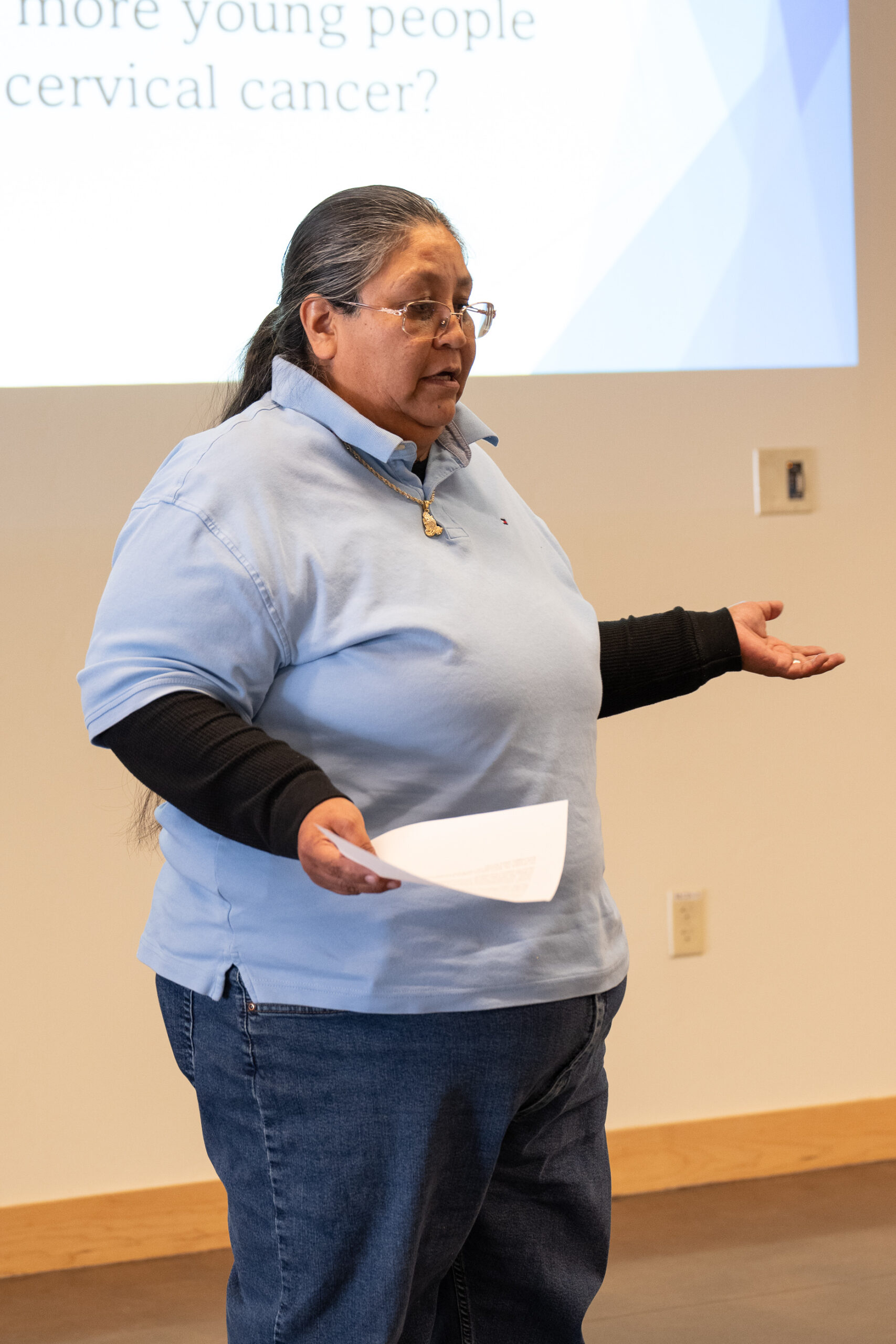 Ute Mountain Ute Tribal member and cervical cancer survivor, Sonja Cuthair shared her emotional personal experience with cervical cancer with attendees of the Cervical Cancer Awareness Lunch and Learn on Thursday, Jan. 16. Despite her hardships, Cuthair overcame and won her battle against cancer, during the event she shared the importance of prioritizing good health and health knowledge.