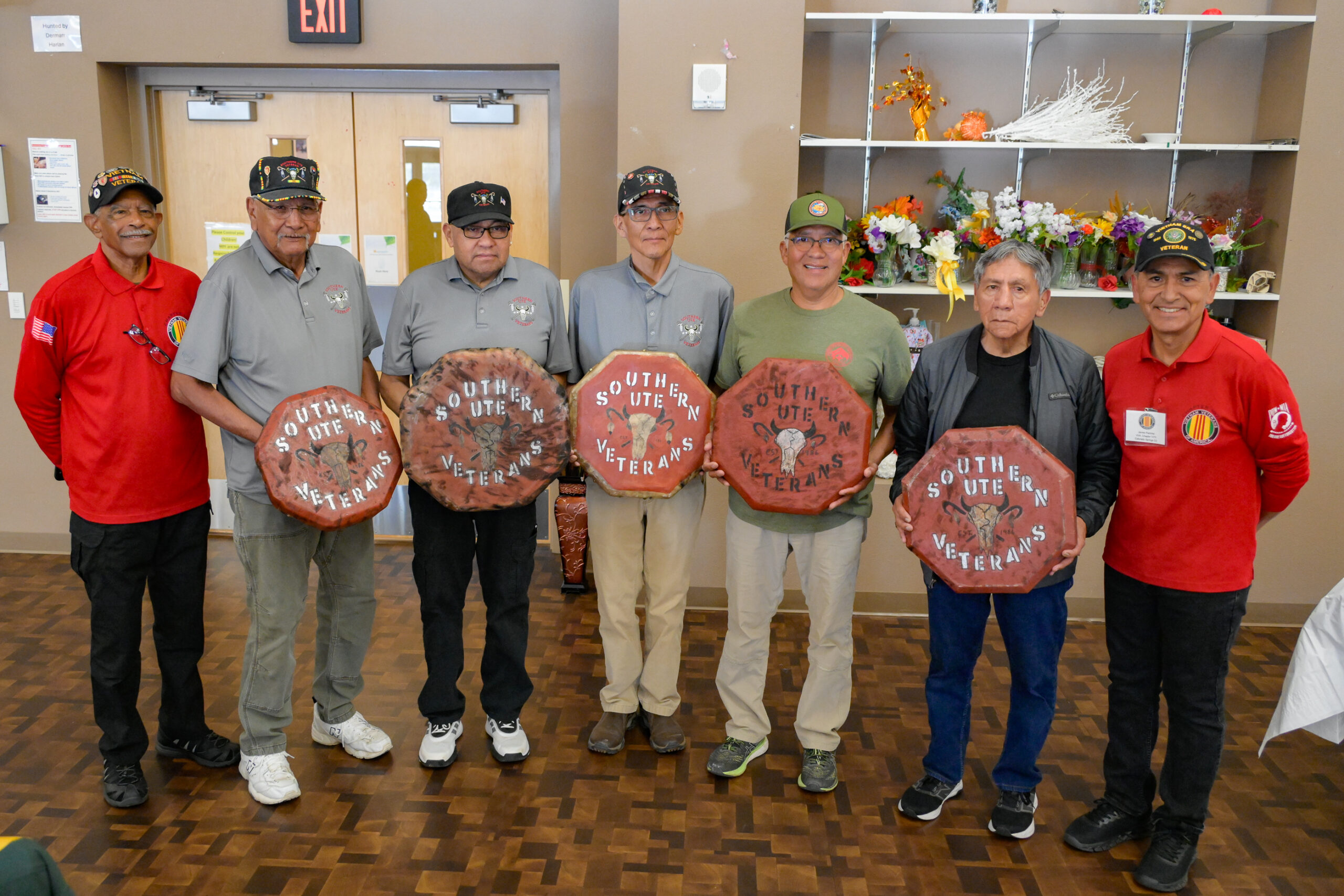 The Vietnam Veterans of America presented the Southern Ute Veterans Association members hand-made hand drums with the association’s logo on the front of them on Wednesday, June 4 during the associations monthly meeting.