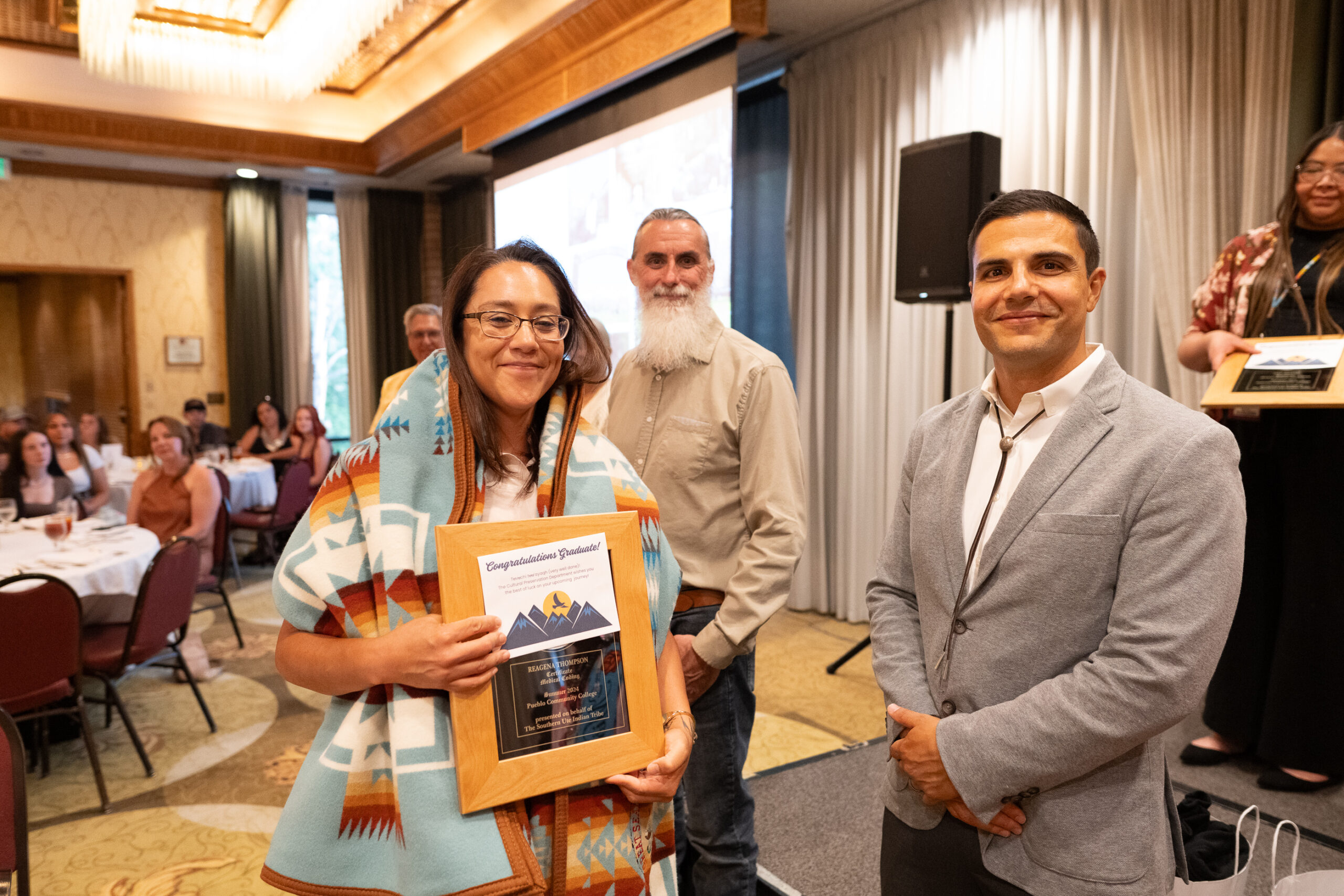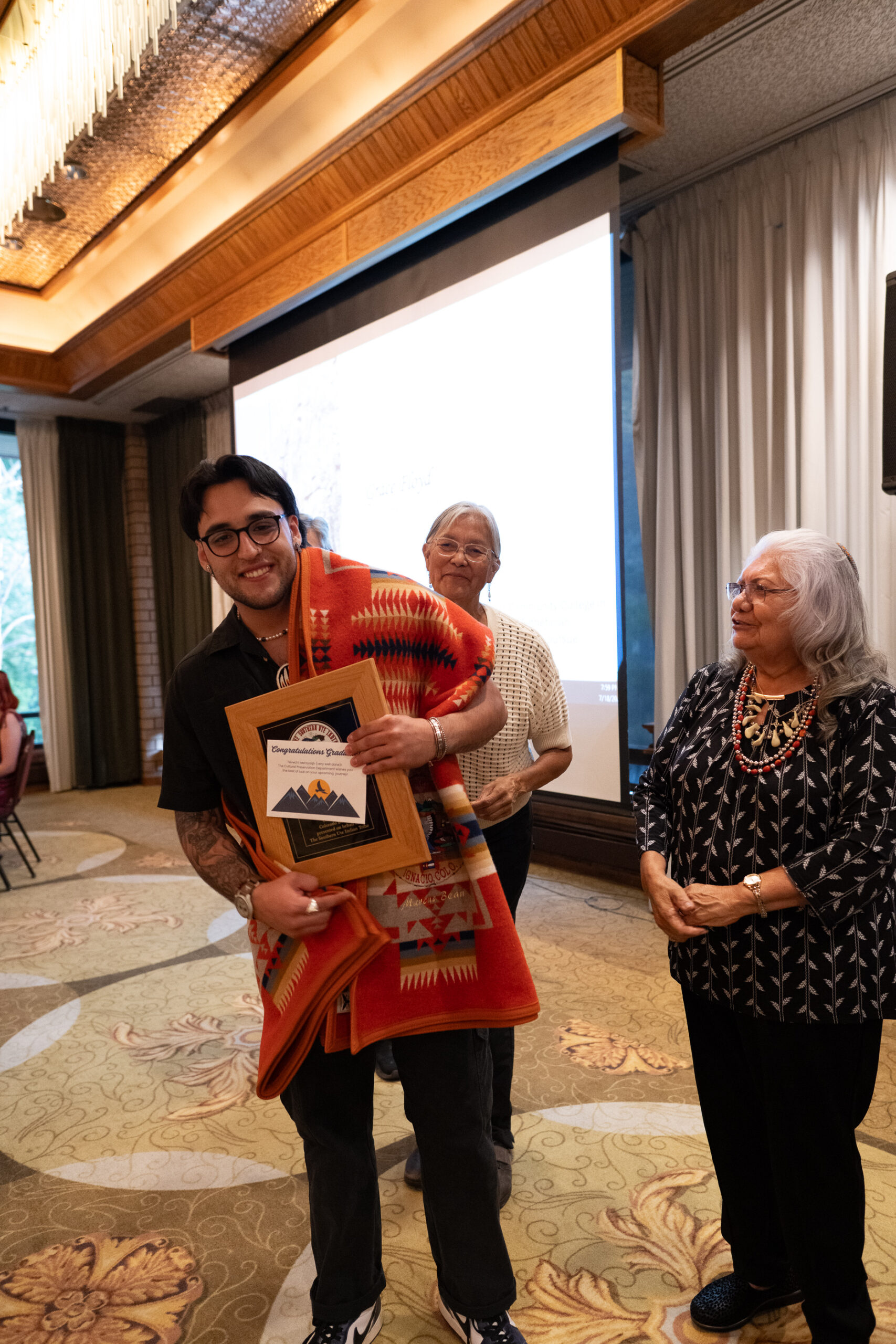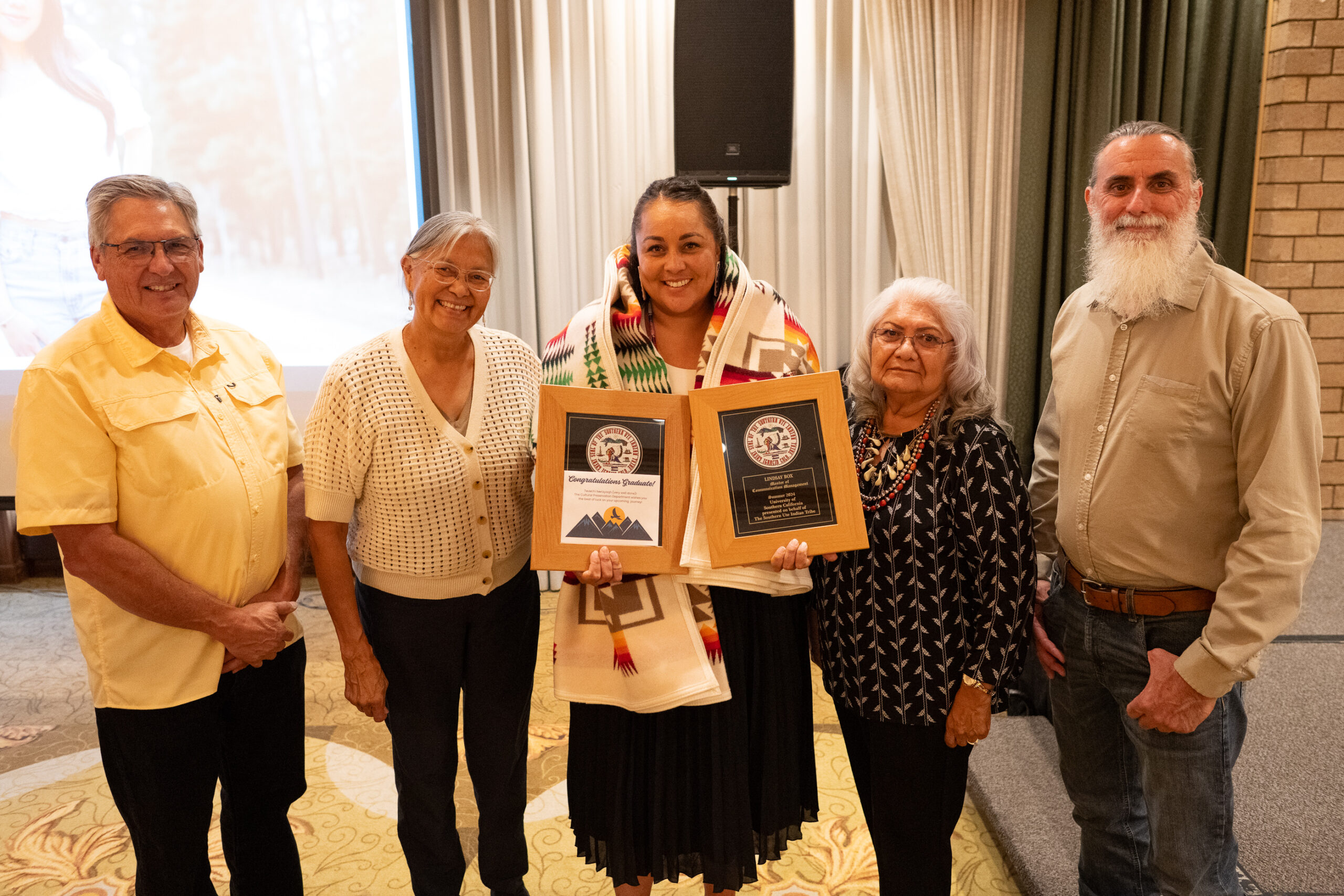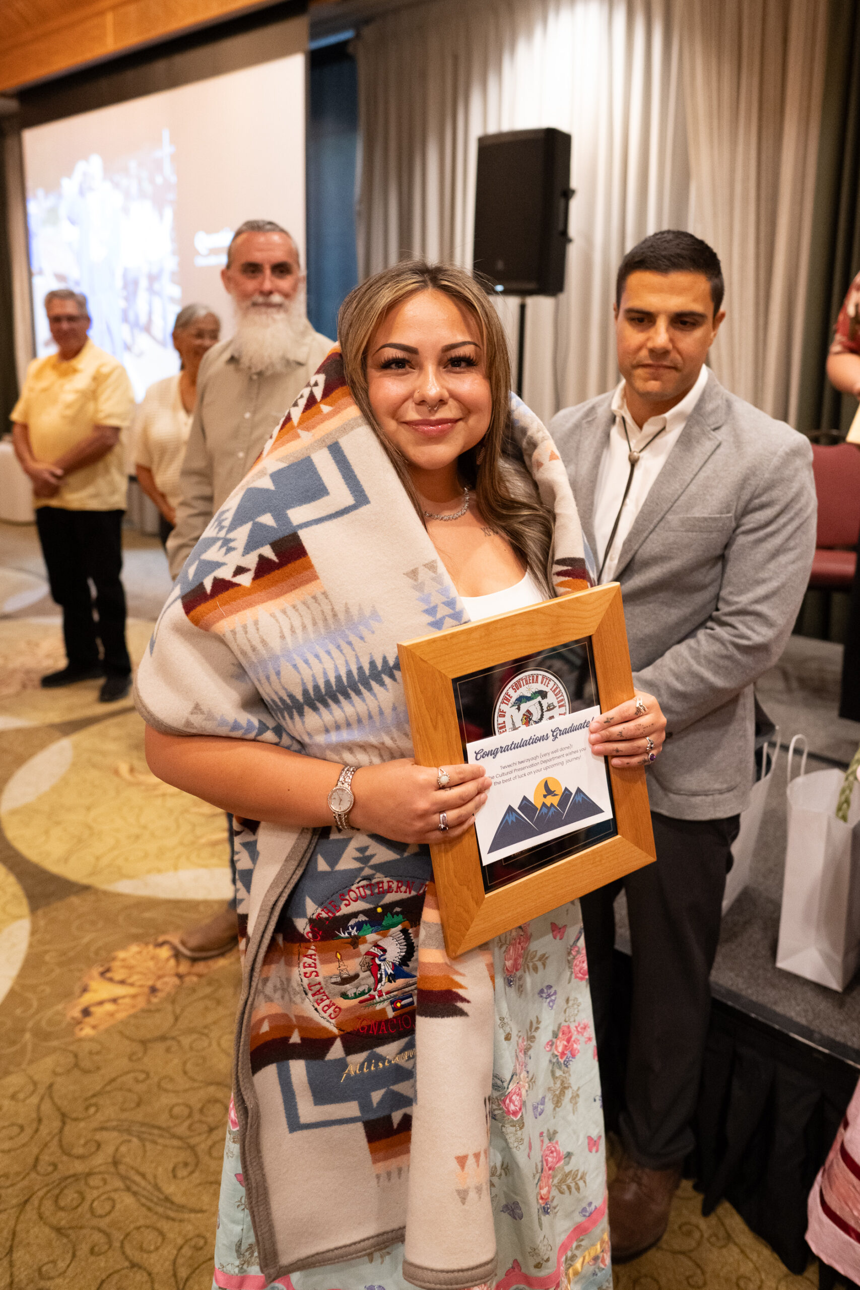 The Southern Ute Education Department hosted its annual Graduation Banquet on Friday, July 18 at the DoubleTree Hilton Hotel in Durango. Southern Ute and Johnson-O’Malley students were recognized for their graduation at all levels, from high school diplomas to master’s degrees each student received custom Pendleton blankets, celebratory cards, and some received plaques. Emceed by Sheila Nanaeto, students and their families enjoyed a meal while hearing from guest speaker and recent college graduate Edward Box III, remarks from Southern Ute Tribal Council, Education Director Dr. Joseph Claunch, Southern Ute Royalty and the Sunshine Cloud Smith Youth Advisory Council.