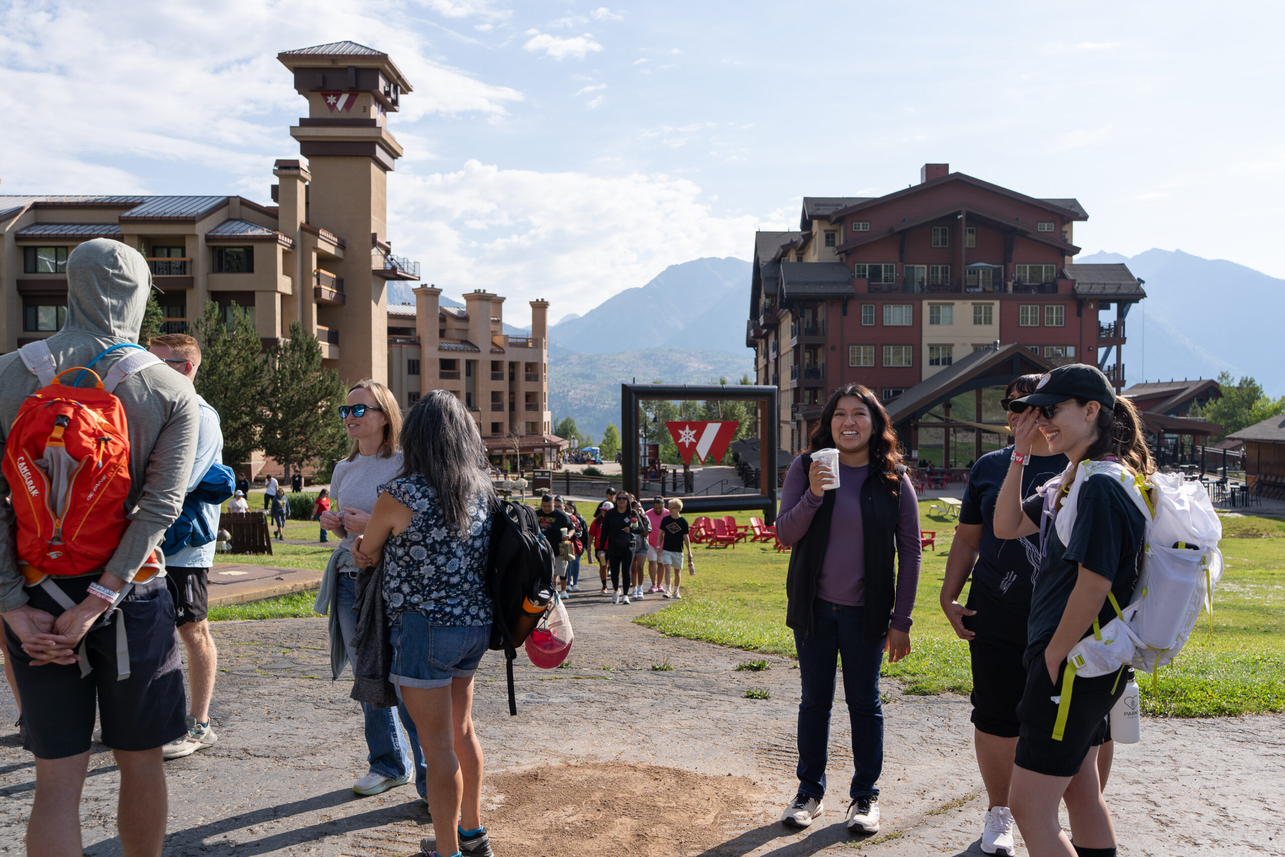 nUte staff members Jake Fixico, Jordan Reid and Virgil Morgan took a break from enjoying the mountain views to share jokes and laughter.