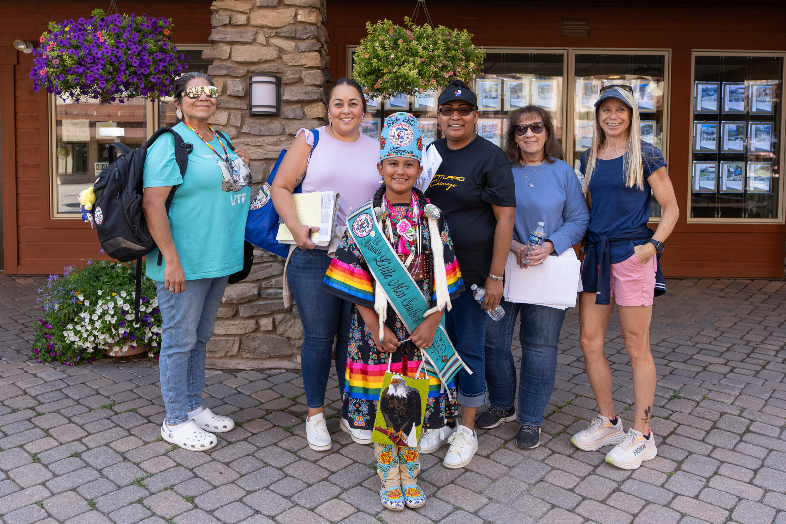Members of the Permanent Fund’s HR Department, along with Executive Officer Lindsey Box, and TIS Director Amy Barry took a break from hosting duties to pose with Little Miss Southern Ute Alternate, Olyvia Watts.