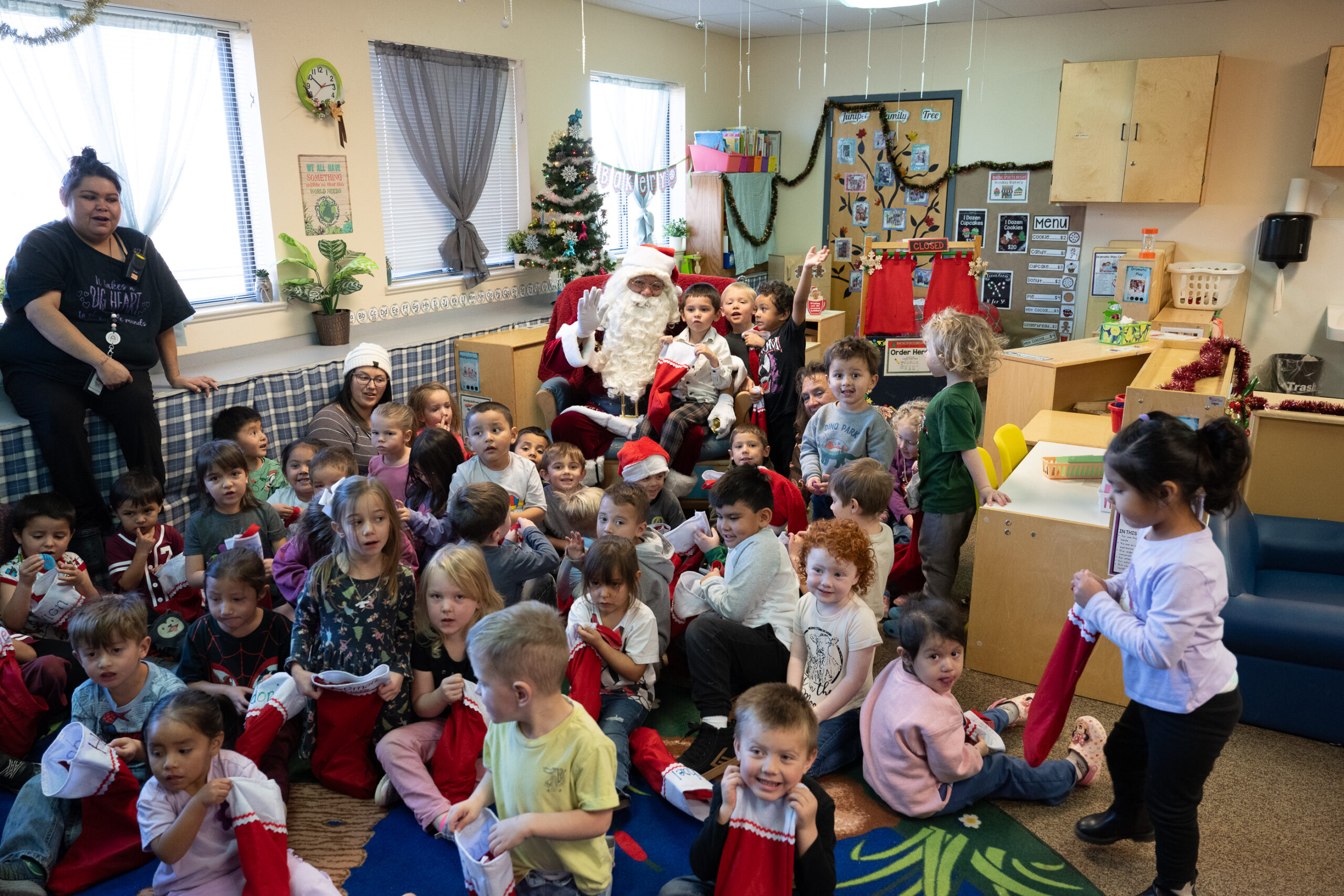 Santa Claus visited the Ignacio Early Learning Program on Wednesday, Dec. 17 to sing Christmas carols and hand out stockings to the students. Southern Ute tribal member, Edward Box III dressed as Santa this year to bring holiday cheer.