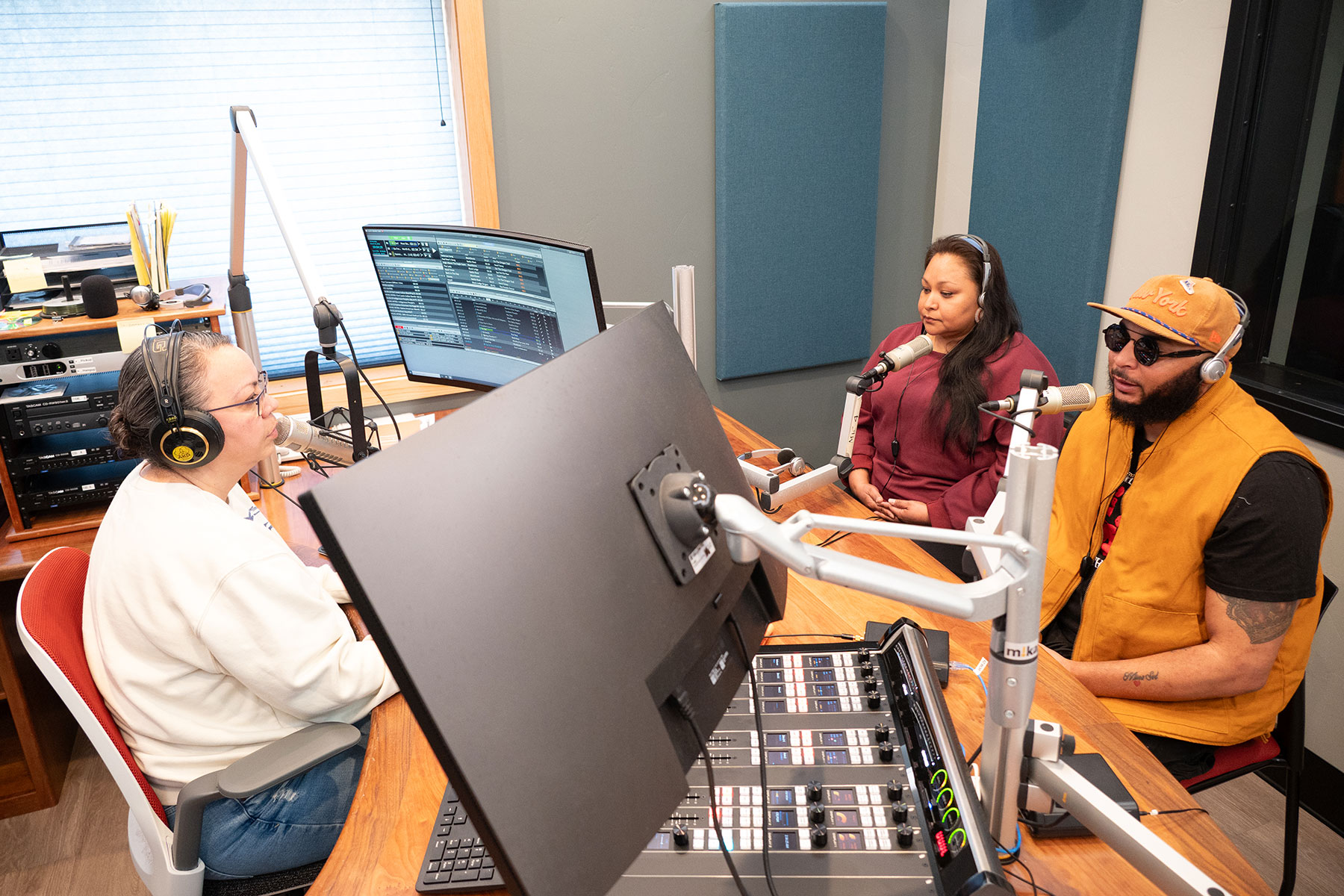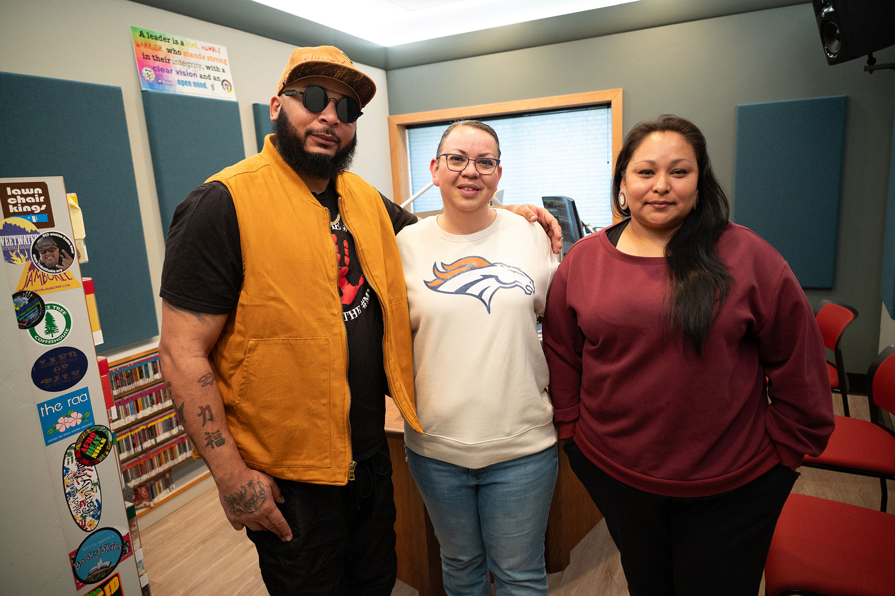 Chi King with Sheila Nanaeto, KSUt tribal Radio Station Manager and Daisy Bluestar, of Native Love in the Tribal Radio studio after their live on-air interview on Tribal Radio, Wednesday, March 18.