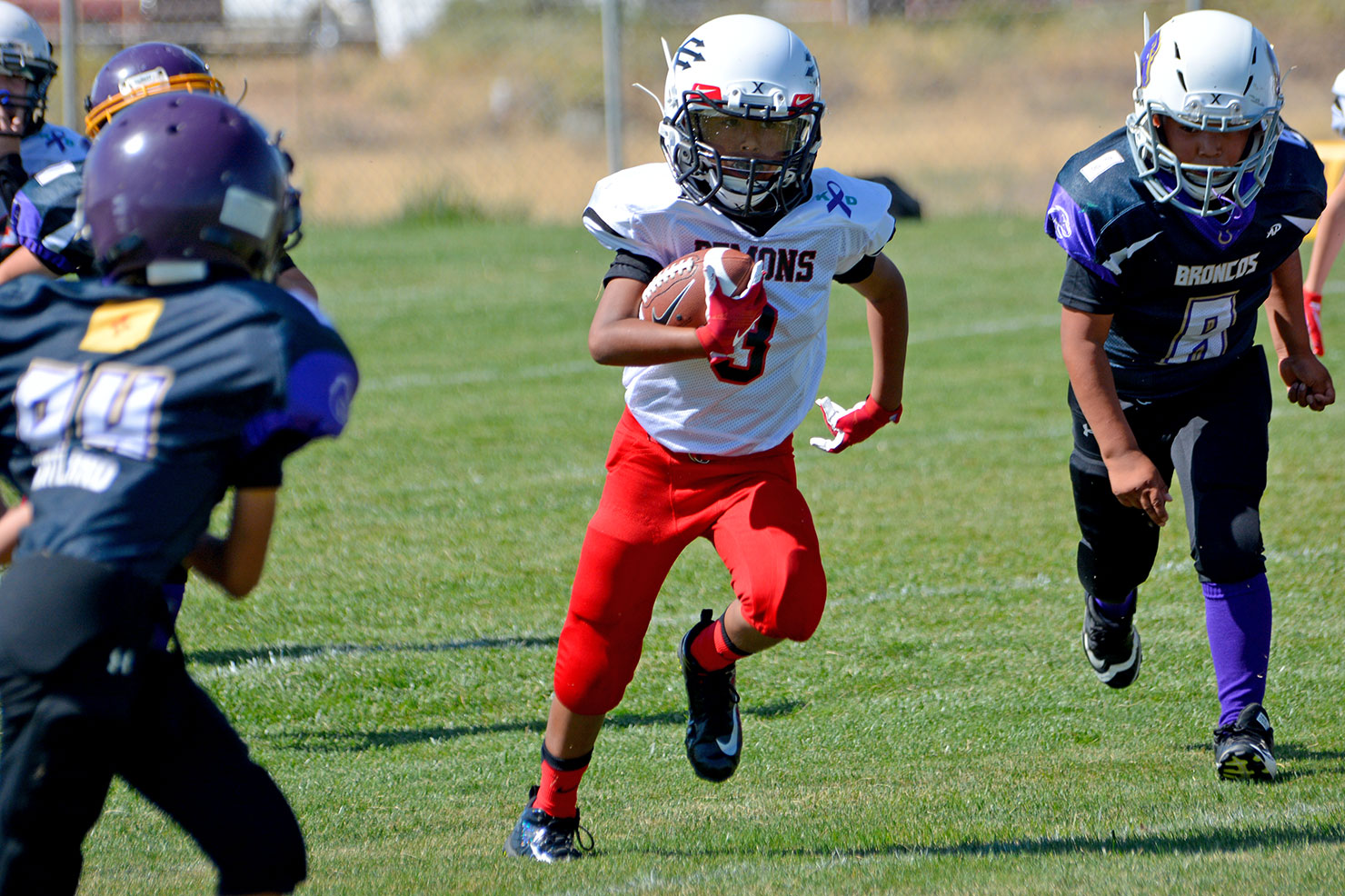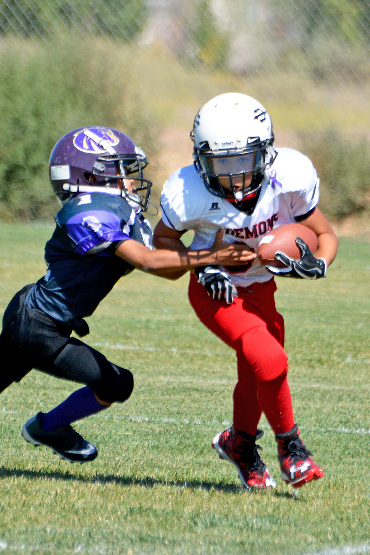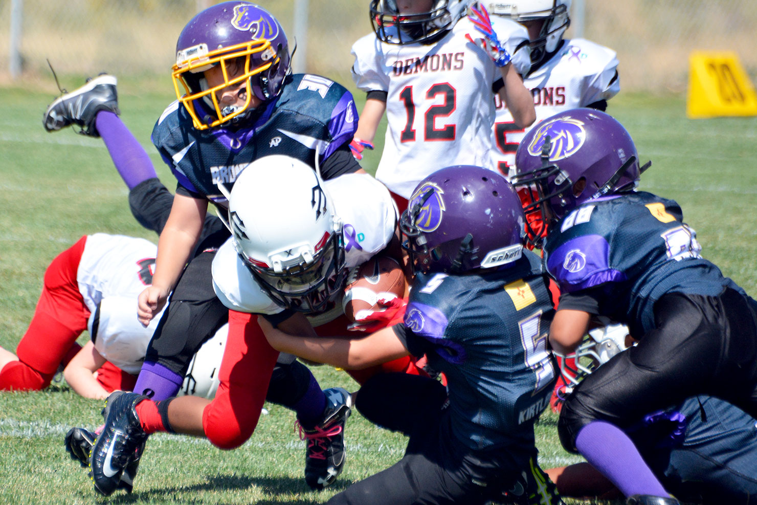 Ignacio third grader, of the Durango Demons, wrapped up a Bayfield Wolverine in a near-perfect tackle.
