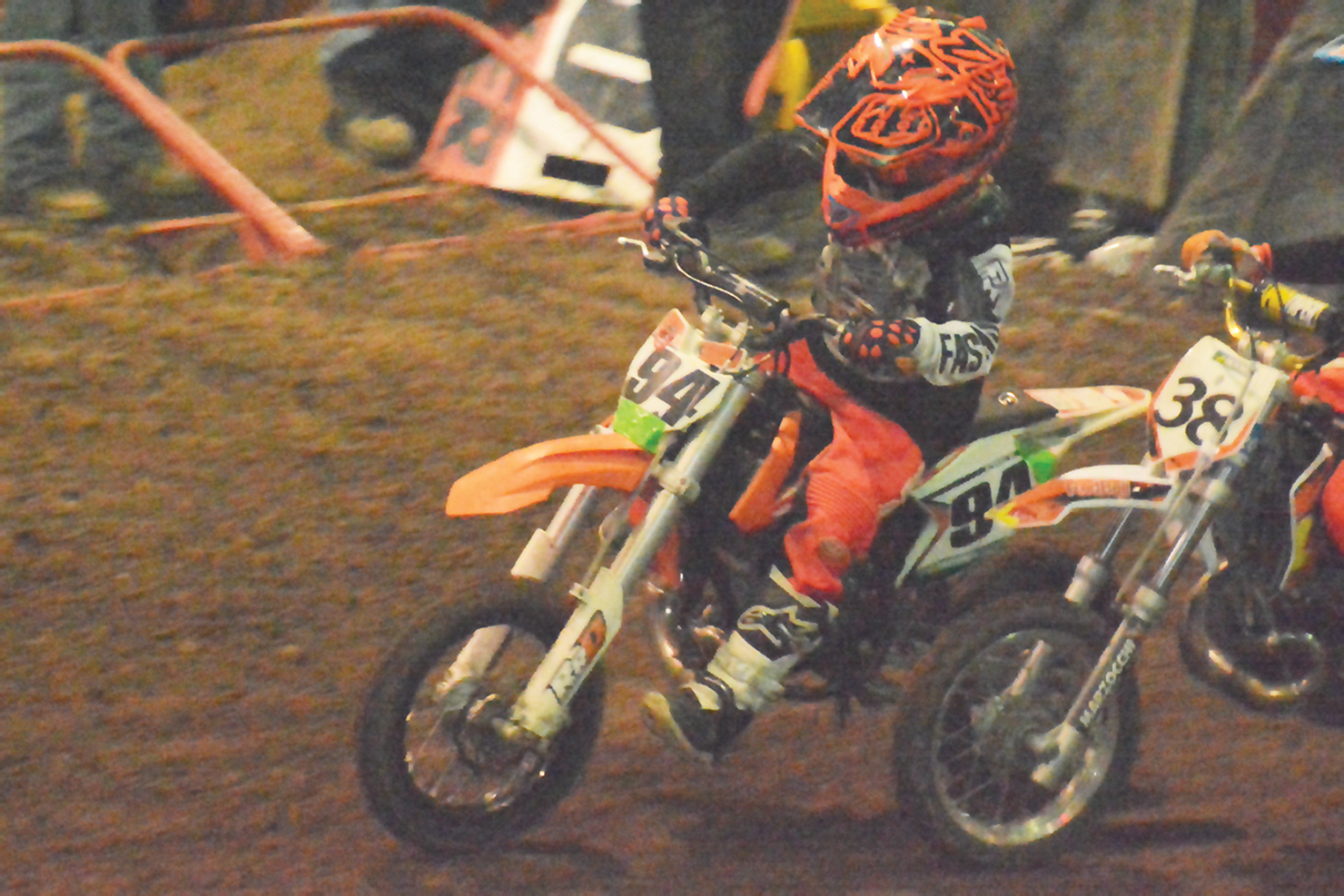 Zachariah Loudenberg (94) squeezes past another rider in the 50cc (4-6 year old) class.