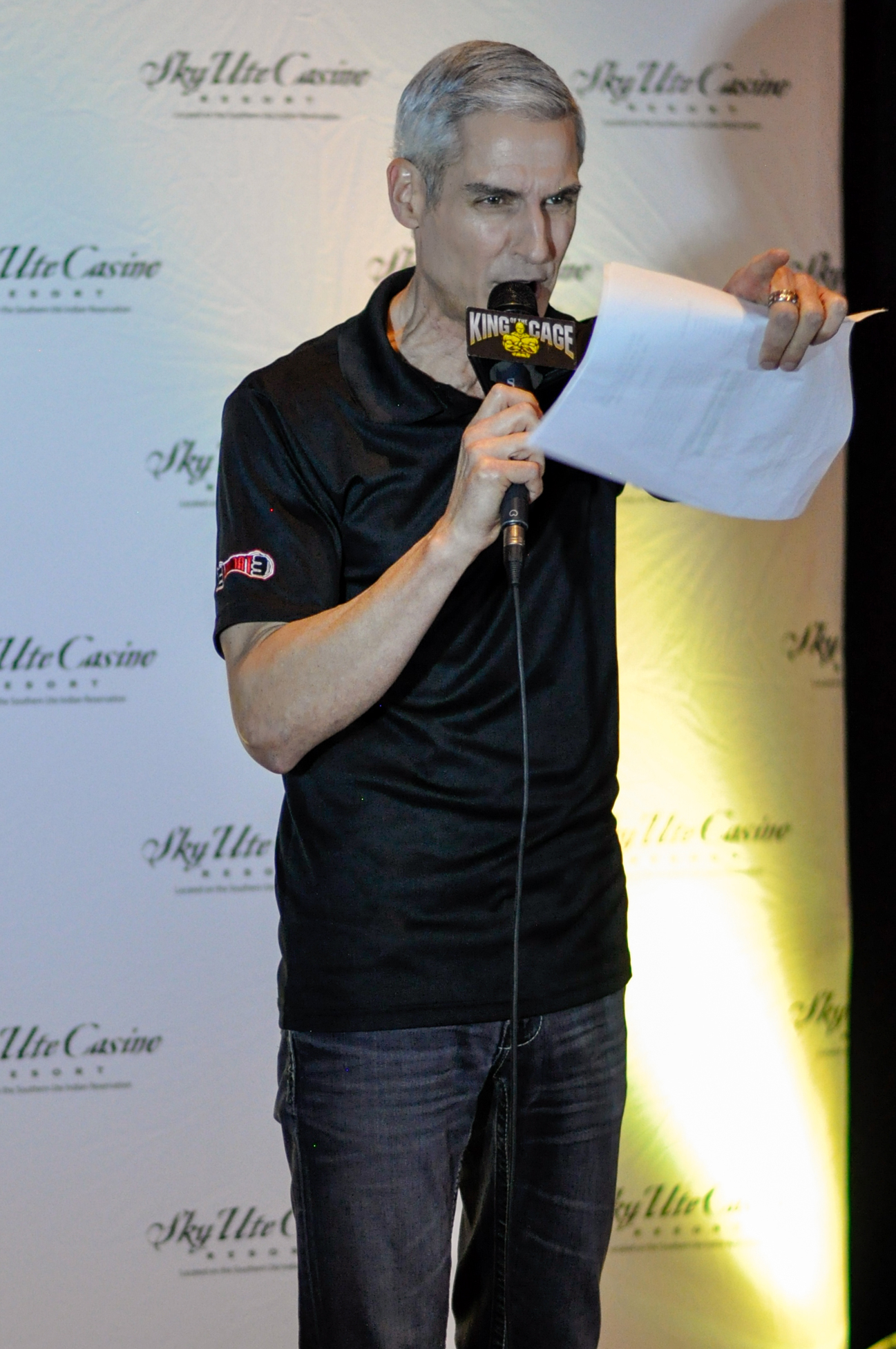 Dean Stone, Ring Announcer broadcast the weigh ins from the Sky Ute Casino Resort Event Center.