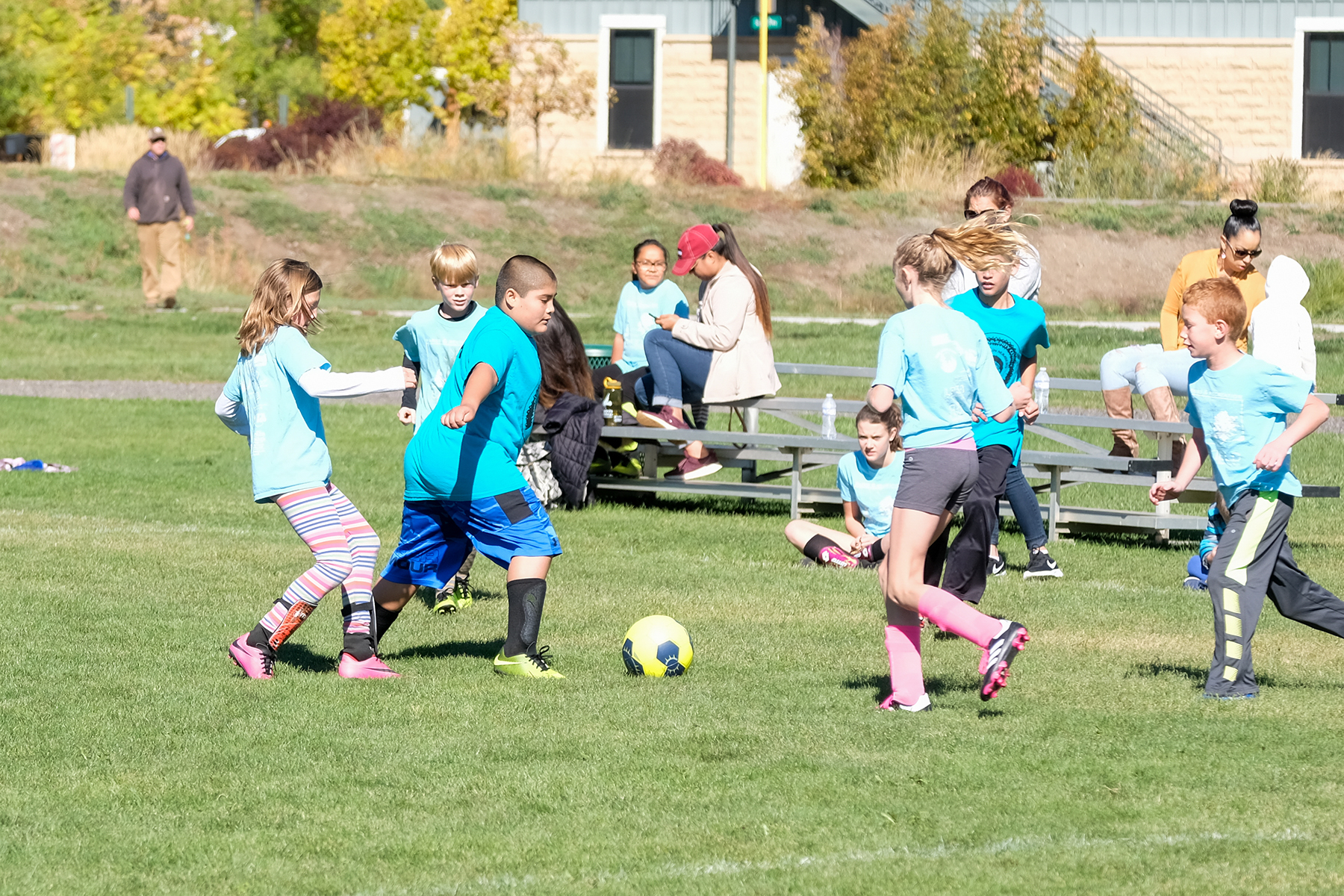 Kodi Rima kicks the ball down the field to try and score a goal for her team SunUte Community Center.
