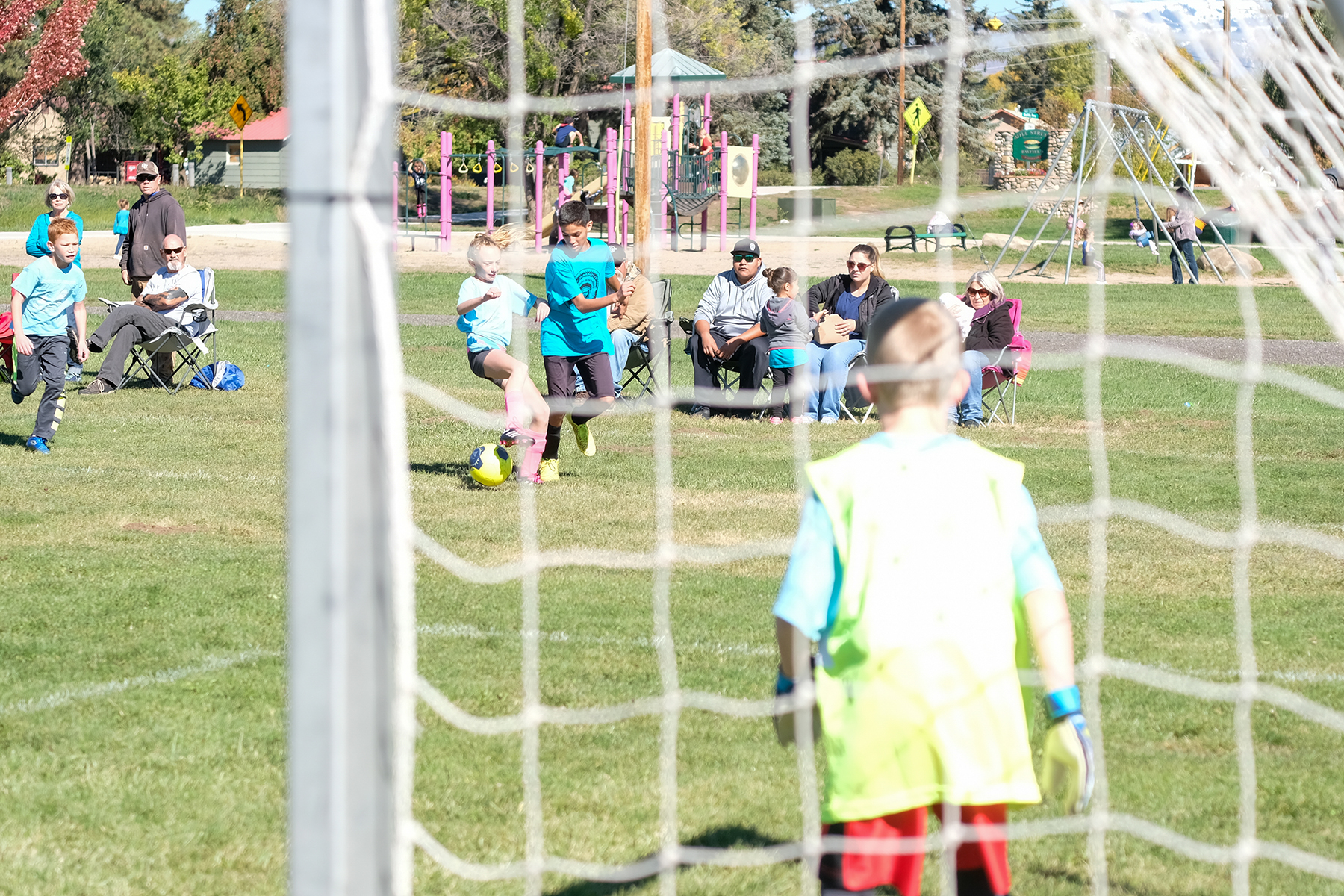 Zane Hight goes for the soccer ball at the Youth Soccer League held at Joe Stephenson Park in Bayfield, Colo.