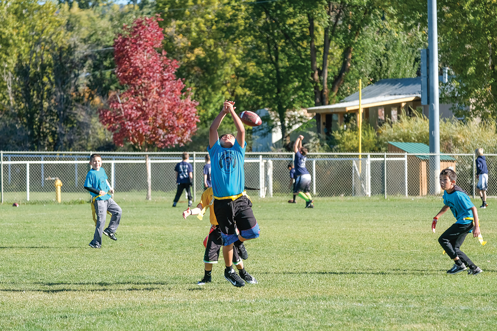 Sunny Flores goes up for the pass and barely misses the football.