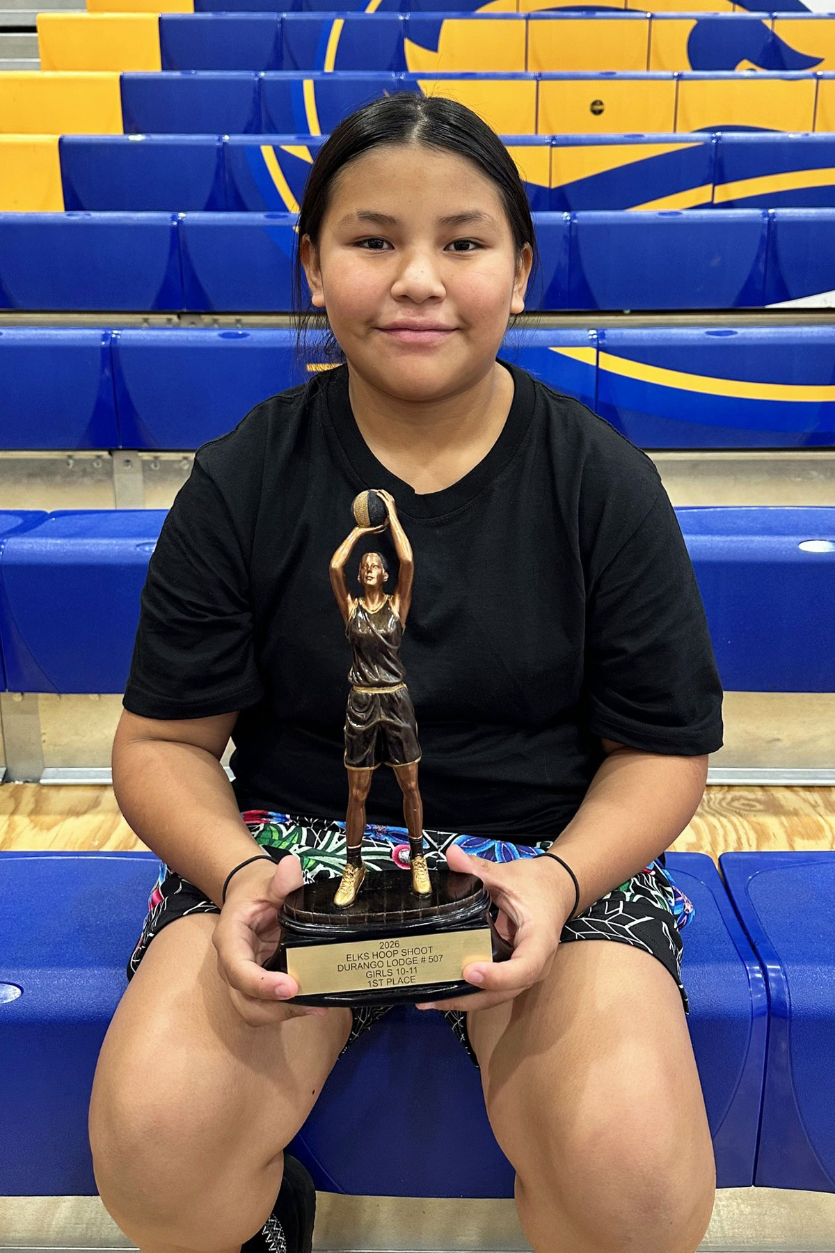 The annual Elks National Hoop Shoot Free Throw basketball contest was held in Durango, Colo. on Sunday, Jan. 18, at Fort Lewis College in the Whalen Gymnasium for youth ranging in age from eight- to13. Five Ignacio students attended the event, with two taking first place and advancing to the District/State Contest to be held in Olathe, Colo., Saturday, Feb. 7.