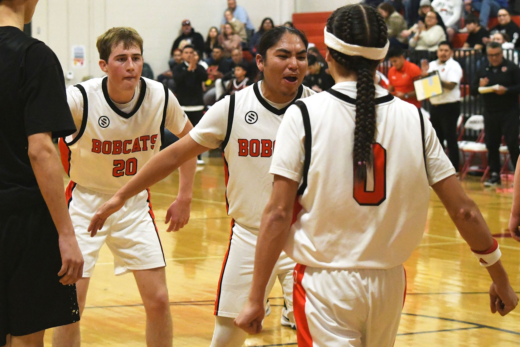Baskets by Richey and Dozier, however, quickly chopped the Bobcats’ lead down to just a point, 23-22, at intermission. Crane got the third quarter underway with a confident hook shot, assisted by senior Stoney White Thunder-Lucero, and after Rathjen converted a Crane feed into a 27-22 advantage, the teams then traded the lead with PSHS coming out ahead and taking a 36-33 edge into the fourth and final frame.