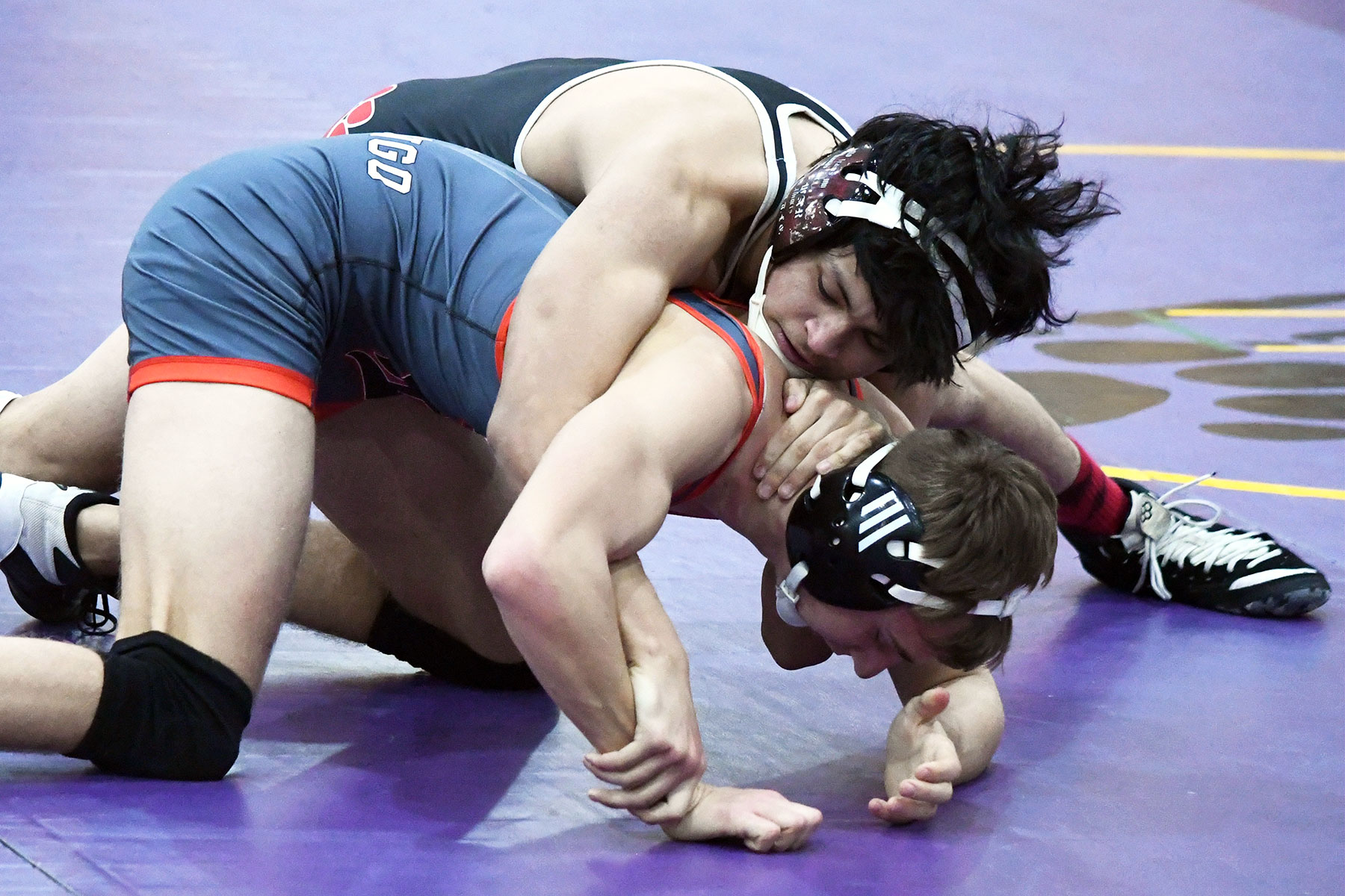 Standing in for the injured Lincoln deKay (2A’s No. 1 at 165), Blevins then pinned Jaylem Wianuka 44 ticks into the third period and brought IHS back to 30-21, but DHS’ McKennon Ingle then defeated Moise Grognard by 11-1 major decision. Velasquez then stepped onto the mat as the dual’s last competitor and claimed six forfeit points, but Durango still ended up ahead 34-27.