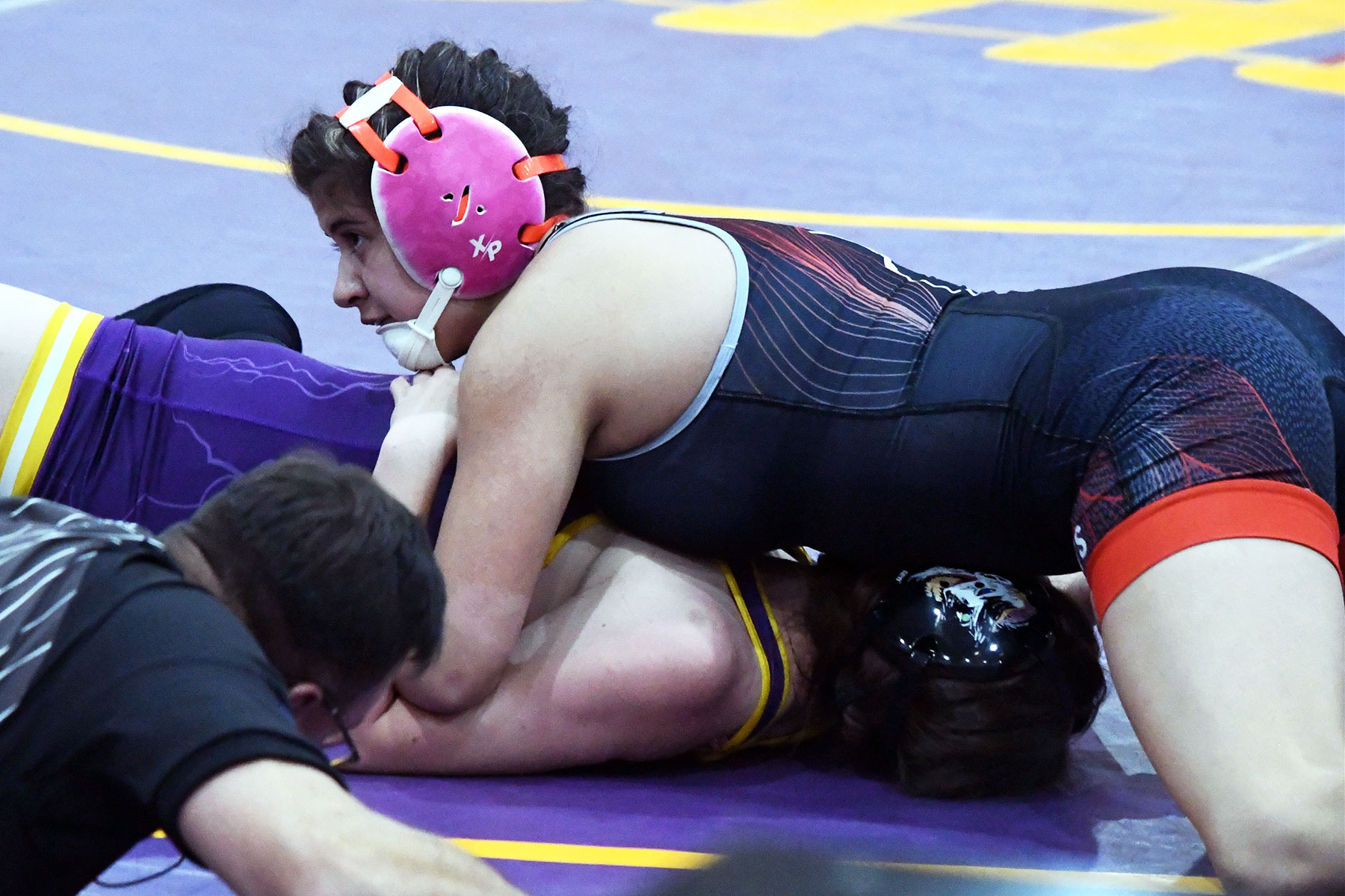 140-pounder Ireland Cates lost her first bout by 9-2 decision, but then defeated Farmington’s AvyAnne Gonzalez 6-2 before bowing out of the competition on the short side of a 6-1 verdict against Bloomfield’s Lilyana Scott. Eliska Prokopova went 3-2 at 145, and earned fifth place via a 12-8 win over Monument Valley’s Arianna Maimone.