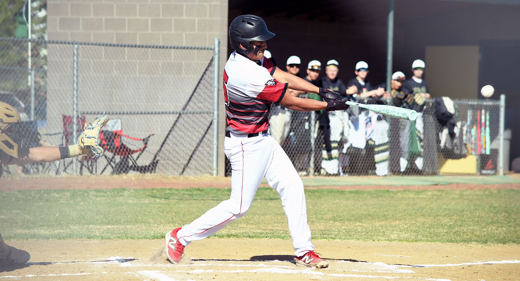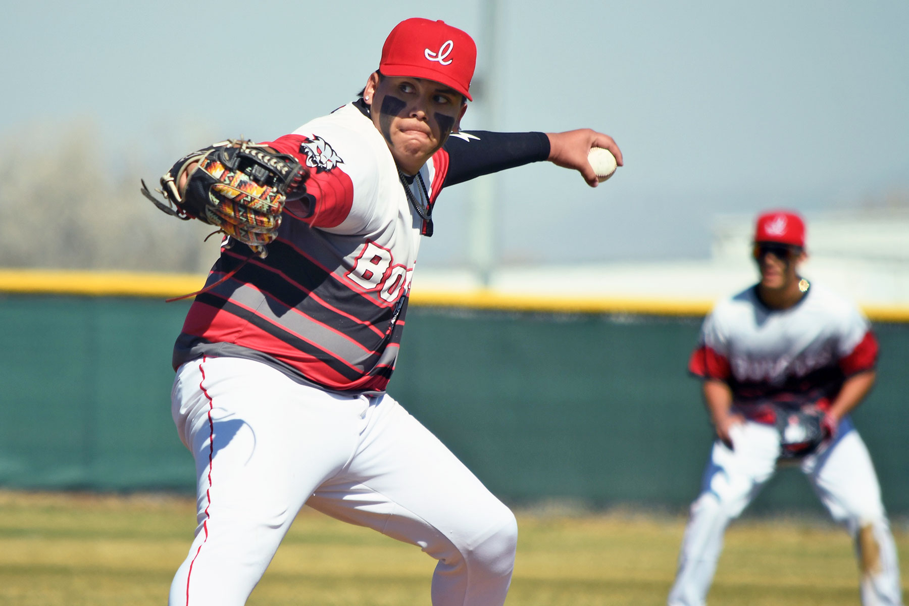 Making his long-awaited debut after recovering from a serious football-season injury, senior catcher Gabe Archuleta led off Game 2 singling MVHS left-hander Judah Howe’s first pitch into center, then took second when junior William Mendoza-Lechuga shot a grounder which third baseman Landon Sanchez couldn’t handle. Senior Stoney White Thunder-Lucero, however, then grounded to Sanchez, who not only forced Archuleta at the hot corner but then fired across the diamond to also collect White Thunder-Lucero.