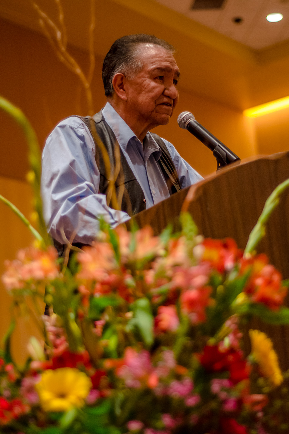 Southern Ute Tribal Chairman, Clement J. Frost, welcomes all who came out to the Thanksgiving dinner with a blessing of gratitude.