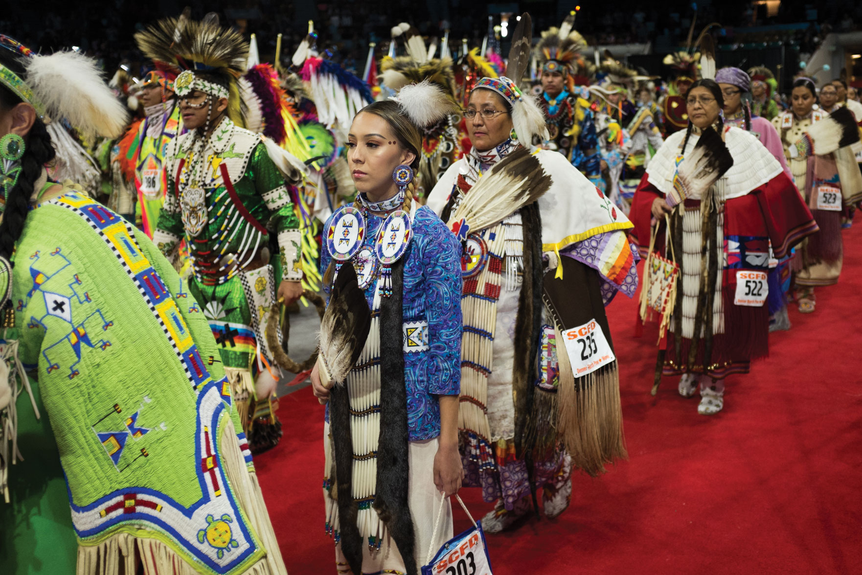 Young dancers make their way into the Denver Coliseum for Grand Entry.