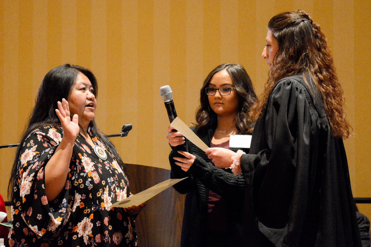 Southern Ute council member Cheryl A. Frost is sworn in Monday, Dec. 18 by Chief Judge Chantel Cloud during the 2017 Southern Ute Tribal Inauguration.