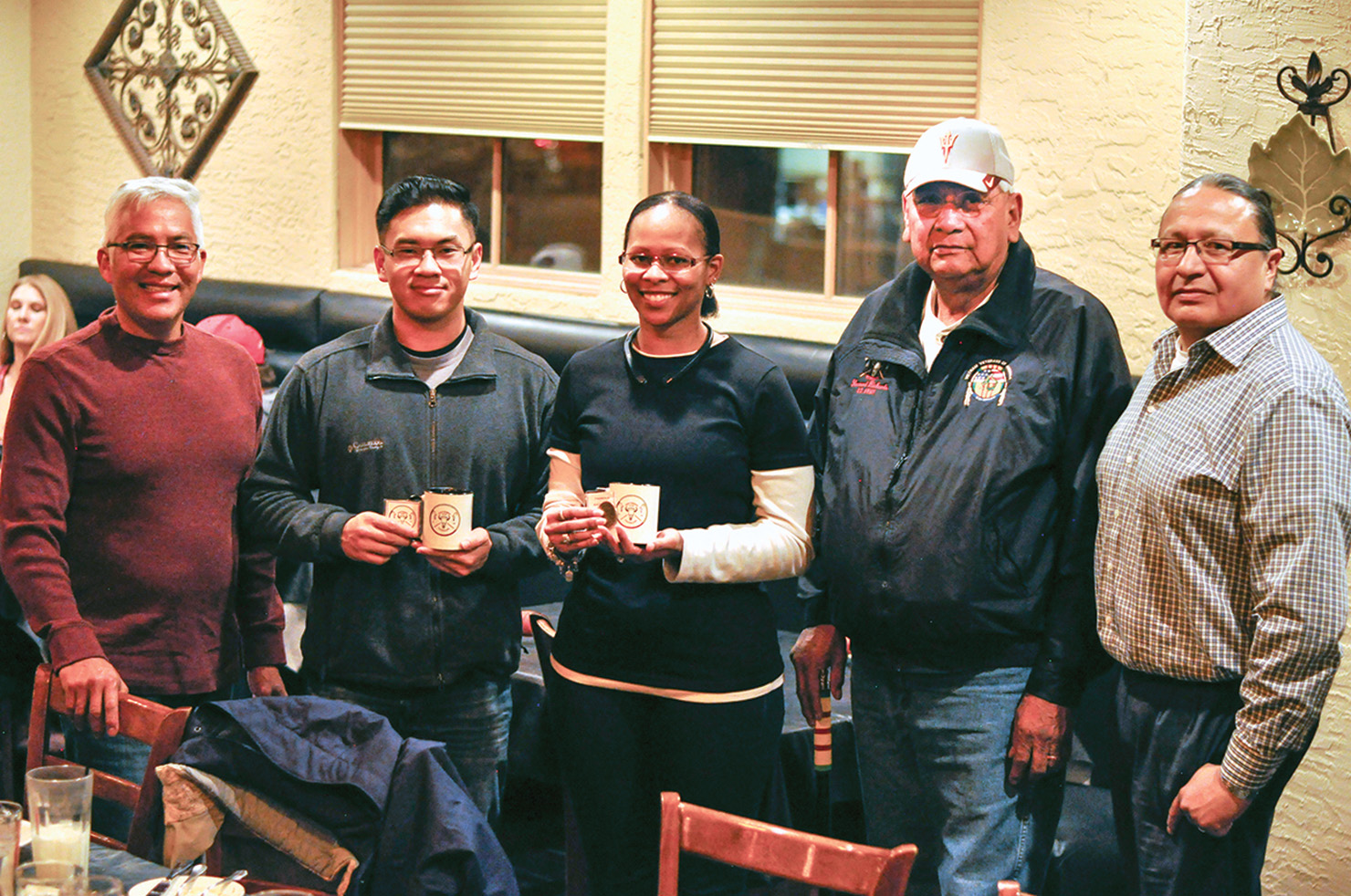 The scholarship brings participants to Durango, where they stay with local residents who open their homes as host families. The Southern Ute Veterans Association honored both Blockett and Wong as Honorably Discharged Vets during an evening dinner at Mutu’s Italian Restaurant on Thursday, Jan. 11. The veterans presented them mugs and coins with the Veterans Logo on them. Raymond Baker, Veterans Association Vice Commander, was the host family for both of the veterans while they were in town.