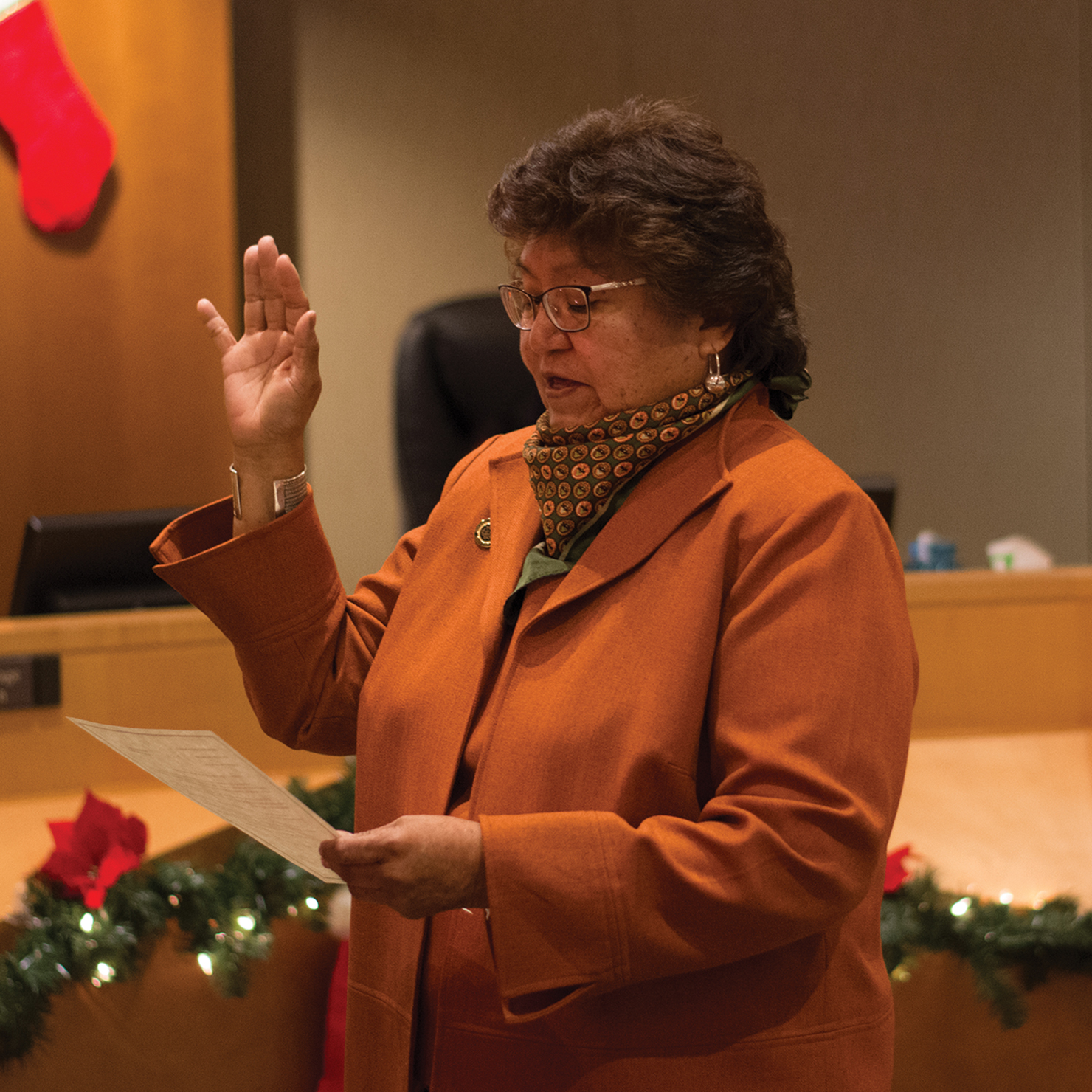The Southern Ute Election Board presented the certified results from the 2019 General Election on Monday, December 16, in the Southern Ute Tribal Council Chambers. Ramona Y. Eagle received 161 votes and newcomer Marjorie D. Barry received 157 votes, both securing their seats on the Southern Ute Indian Tribal Council. Unsuccessful candidates were James M. Olguin (151) and Adam Red (135).