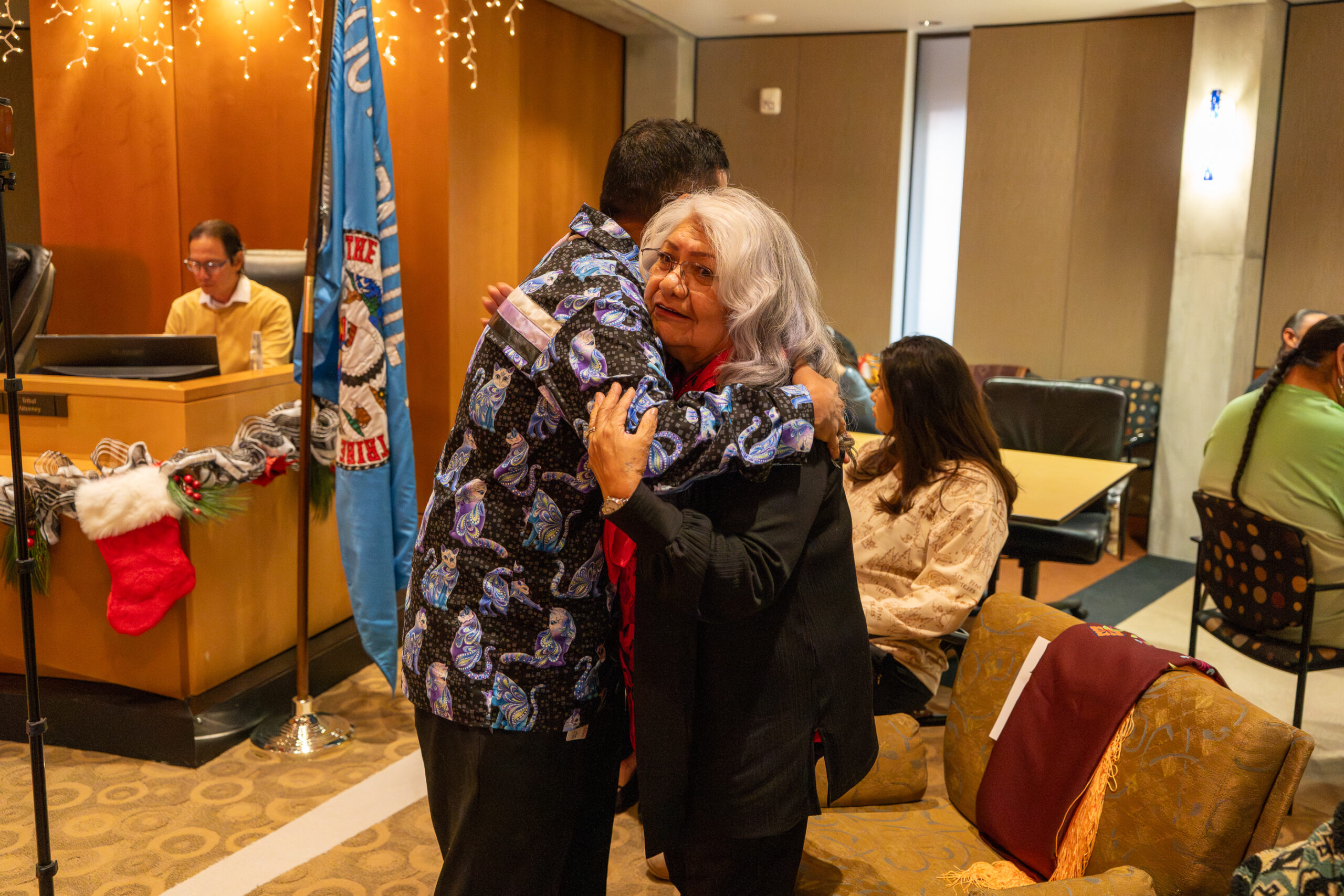 The ceremony took place in the Tribal Council Chambers, where Chief Judge Scott Moore administered the oaths of office. The Council Chamber was filled with families, Tribal Members, and staff, who joined together to celebrate the occasion. Dignitaries in attendance included leaders from the Ute Mountain Ute Tribe and Jicarilla Apache Nation, as well as officials from Archuleta County, the City of Durango, and the Town of Ignacio. Federal representation included staff from the offices of U.S. Representative Hurd, U.S. Senator Hickenlooper, and U.S. Senator Bennet.