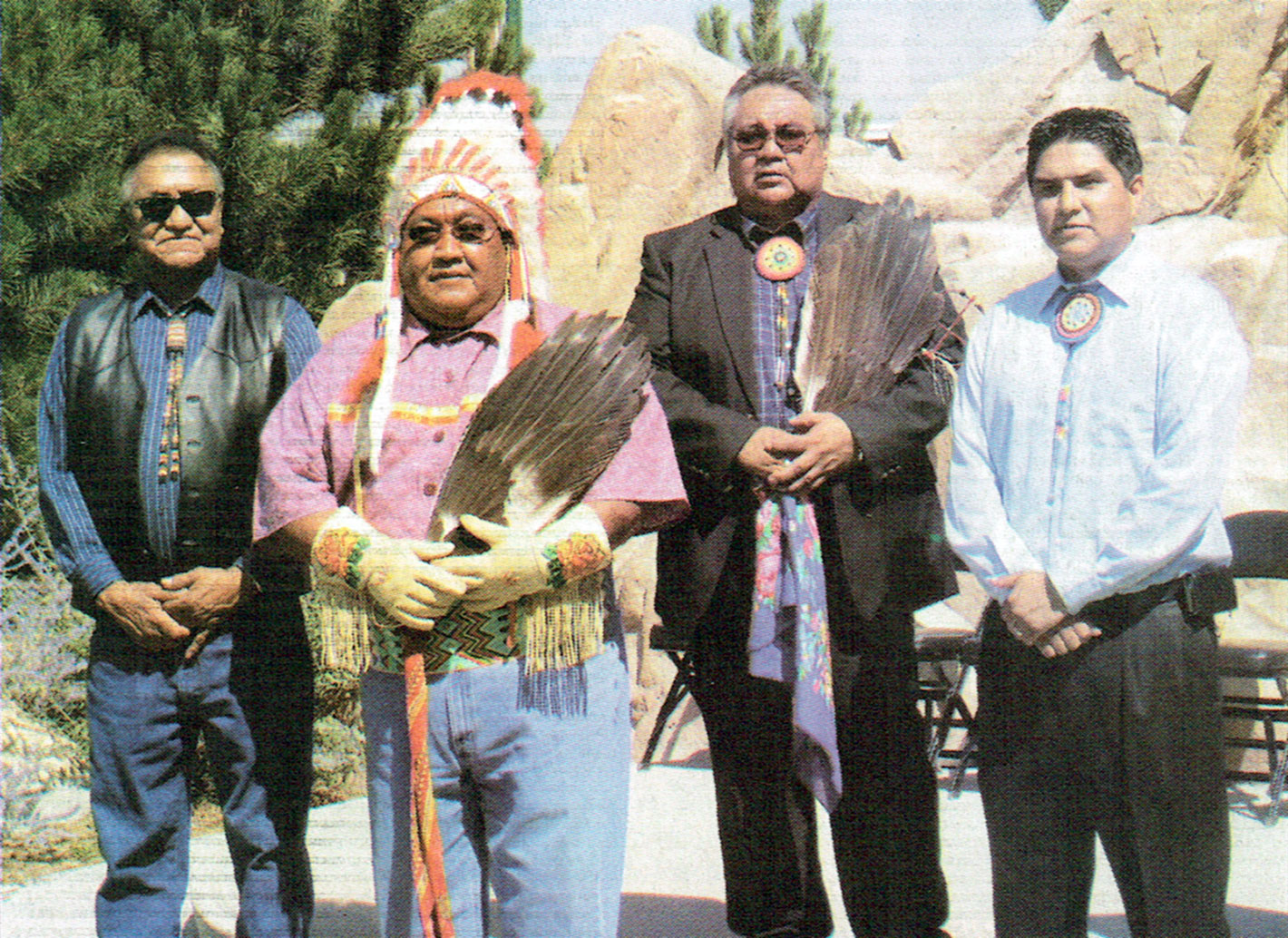 10 years ago, Southern Ute Chairman,Clement Frost, Boyd Lopez of the Ute Mountain Ute Tribe, Southern Ute Executive Officer, Bryon Red and Executive Secretary of the Colorado Commission of Indian Affairs, Ernest House, Jr., join Colorado Lieutenant Governor, Barbara O’Brien and other dignitaries in a blessing of the Pepsi Center in Denver, Colo., on Friday, July 25, 2008.
