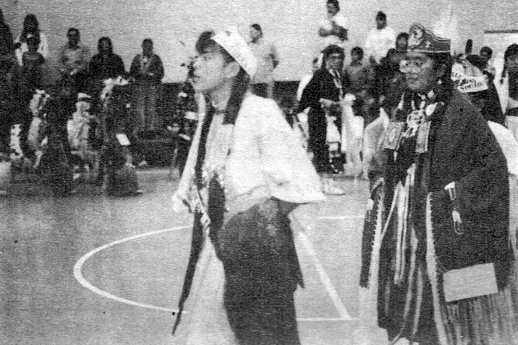 30 years ago, TONIETTE BACA - Jr. Miss Southern Ute in the grand entry following behind is Rita Jacket and Jenny Frost, Little Miss Southern Ute.
