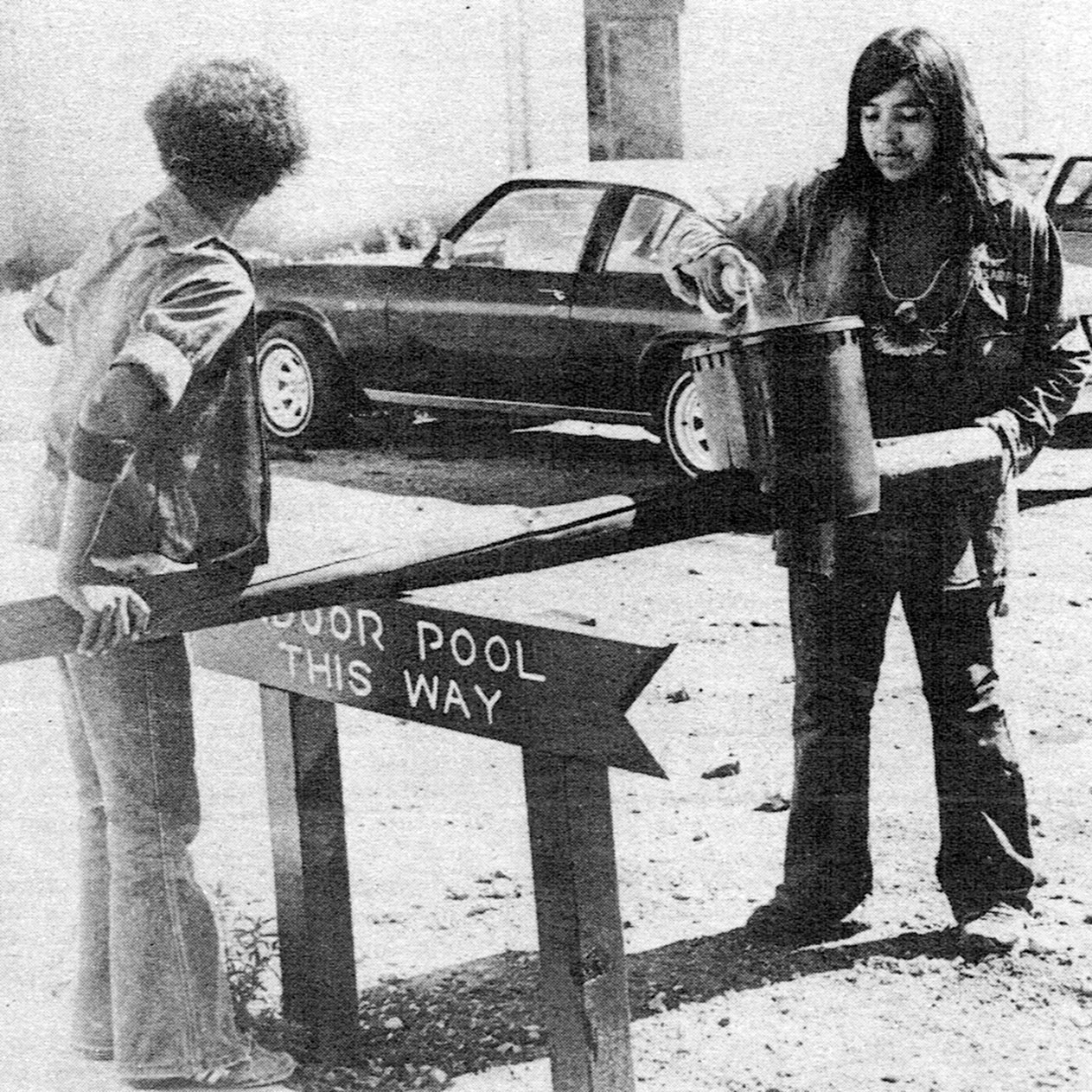 40 years ago, A BIG PIPE - A huge peace pipe was needed for the Navajo Trails Fiesta parade float the tribe is entering. Rusty Box puts the final touches on the pipe the building committee thought up.
