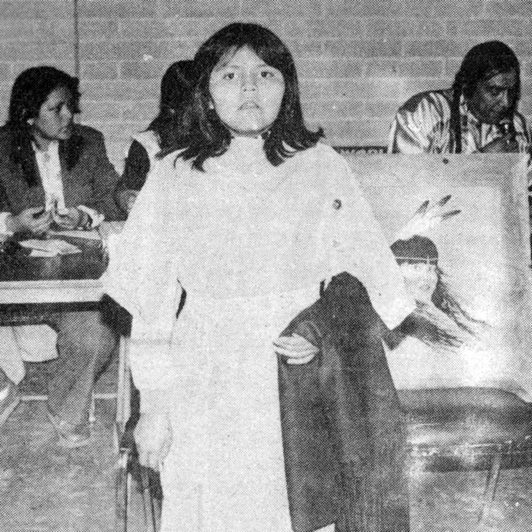 Many Moons 40: Ronaldlyn Tiznado was the only entry for the 9–12-year-old Girls Traditional Contest at the Pre-Christmas Powwow held on Dec. 19, 1982.
