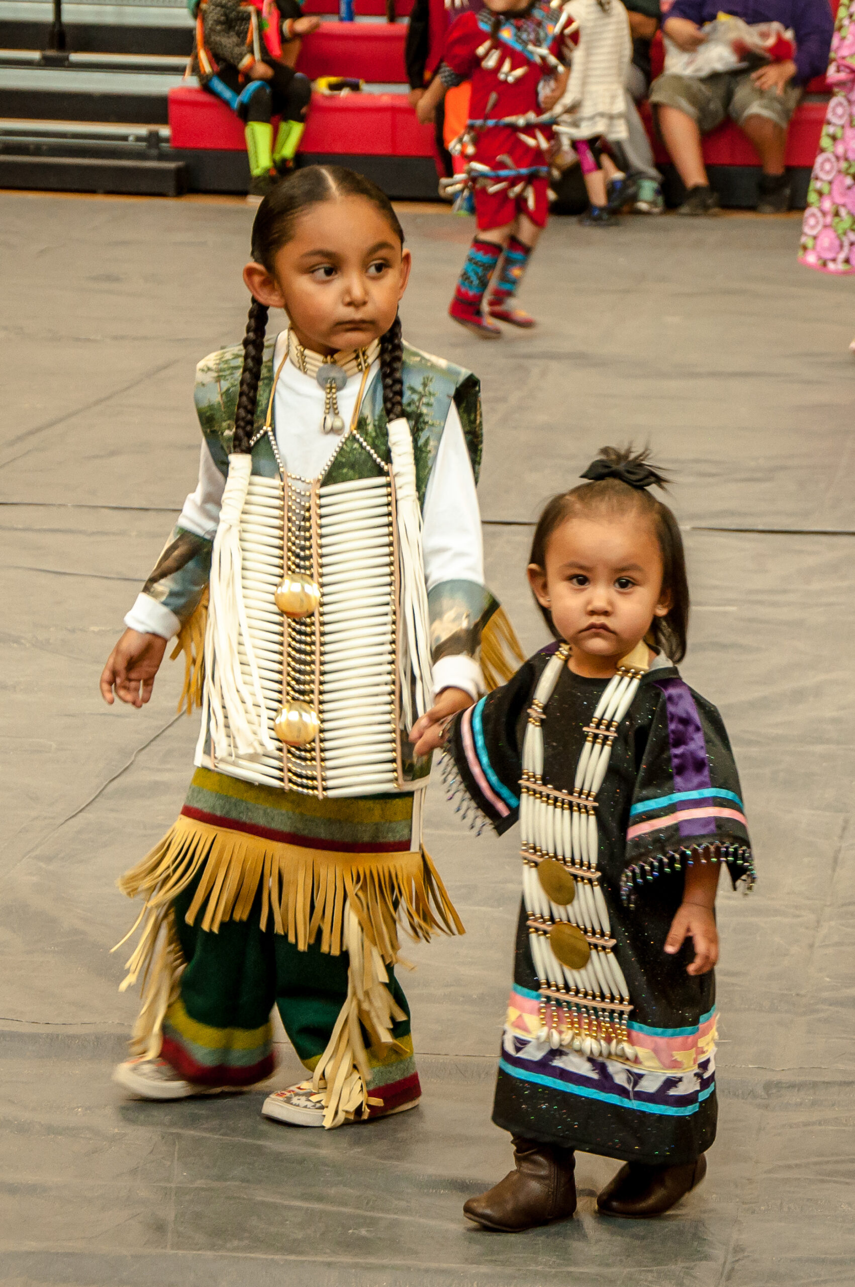 Orion Watts leads little sister Olyvia around the dance floor during an intertribal on Saturday, April 9.